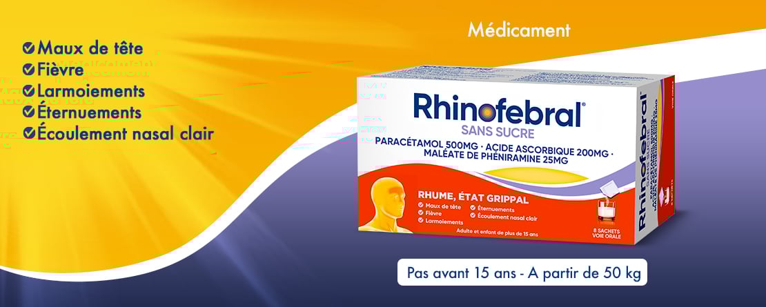 Rhinofebral Sans Sucre, médicament contenant du paracétamol. Ne pas associer à d'autres médicaments qui en contiennent, pour éviter tout risque de surdosage.